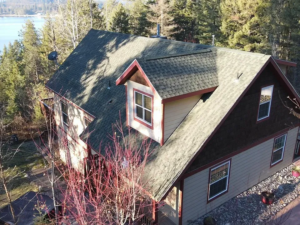 Seller open to participating in seller paid interest rate buydown for Buyers. Enjoy the sunsets on the lake from your hot tub! Pride in ownership in this like new 3112 sq ft 5 BR 3 bath home on 1.84 Ac. Great Room with balcony and gas fireplace new laminate flooring. Impressive 596 sq ft Master suite with jetted tub, new walk in shower, reading loft with skylights overlooking great room. Quality built home with solid pine doors and cabinets, security system, low utility bills and lake views from every level. . Walkout Basement has a large den, home theater with surround sound, bathroom, two bedrooms and office. Main floor has 2 more bedrooms, kitchen with new granite countertops, bath, laundry with new appliances, and greatroom prow with gas fireplace overlooking Cocolalla lake. Features radiant floor heat, covered decks, fire pit, balcony and patio with hot tub all on a well maintained County road with snow removal in winter. Property includes detached garage, carport and seasonal creek. Perfect for a VRBO or year round living. Motivated Sellers